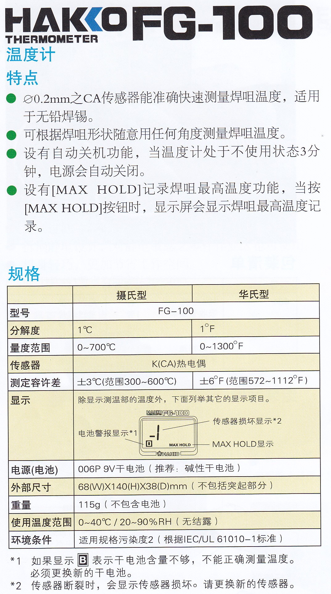Product Name : | HAKKO FG-100 Thermometer 溫度計 |