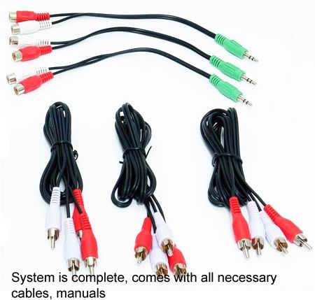 * Wooden case for whole set, including woofer and satellite speakers.