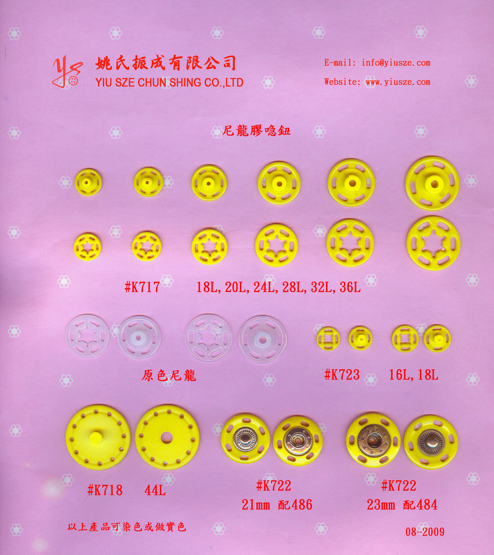 K717 18L 20L 24L 28L 32L & 36L Nylon Press Btn 尼龍膠啪鈕