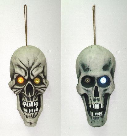 2 ASSORTED 17.5" HANGING FLAT SKULL WITH 3 COLOR LED LIGHT