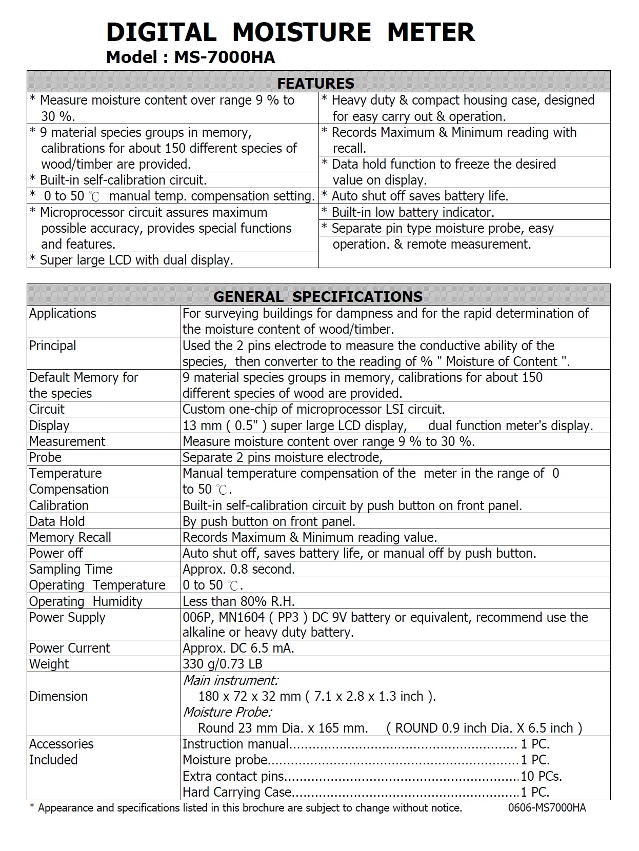 Product Name : | MOISTURE METER - MS-7000HA 木材水份計/水分測定儀 |