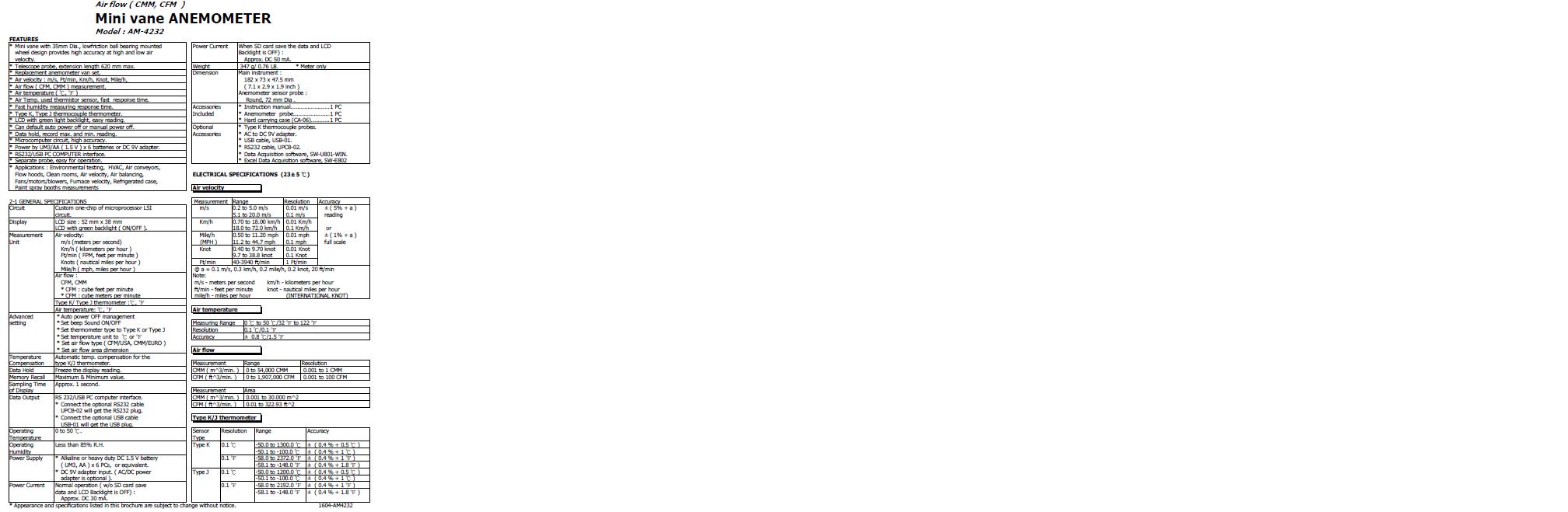 Mini vane Air flow ( CMM. CFM ) ANEMOMETER, + type K/J Temp.