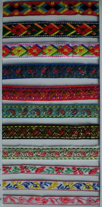 主要生产织带,格子带,电脑提花带,民族带,彩虹带,双耳带,罗纹间色带,礼品圣诞带,花饰品,彩带,印花带,吊牌,膊头带,棉膊带,透明膊带,全棉绳带,橡筋带,雪纱带,丝带,丝绒带,包边带,门襟带,帽带,针织带,花边,钮扣,纺织,肩带,商标,弹力带,提花松紧带,鞋带等各类服装服料,广泛用于服装、玩具、鞋帽、印刷、礼饰、电子、手袋等行业。