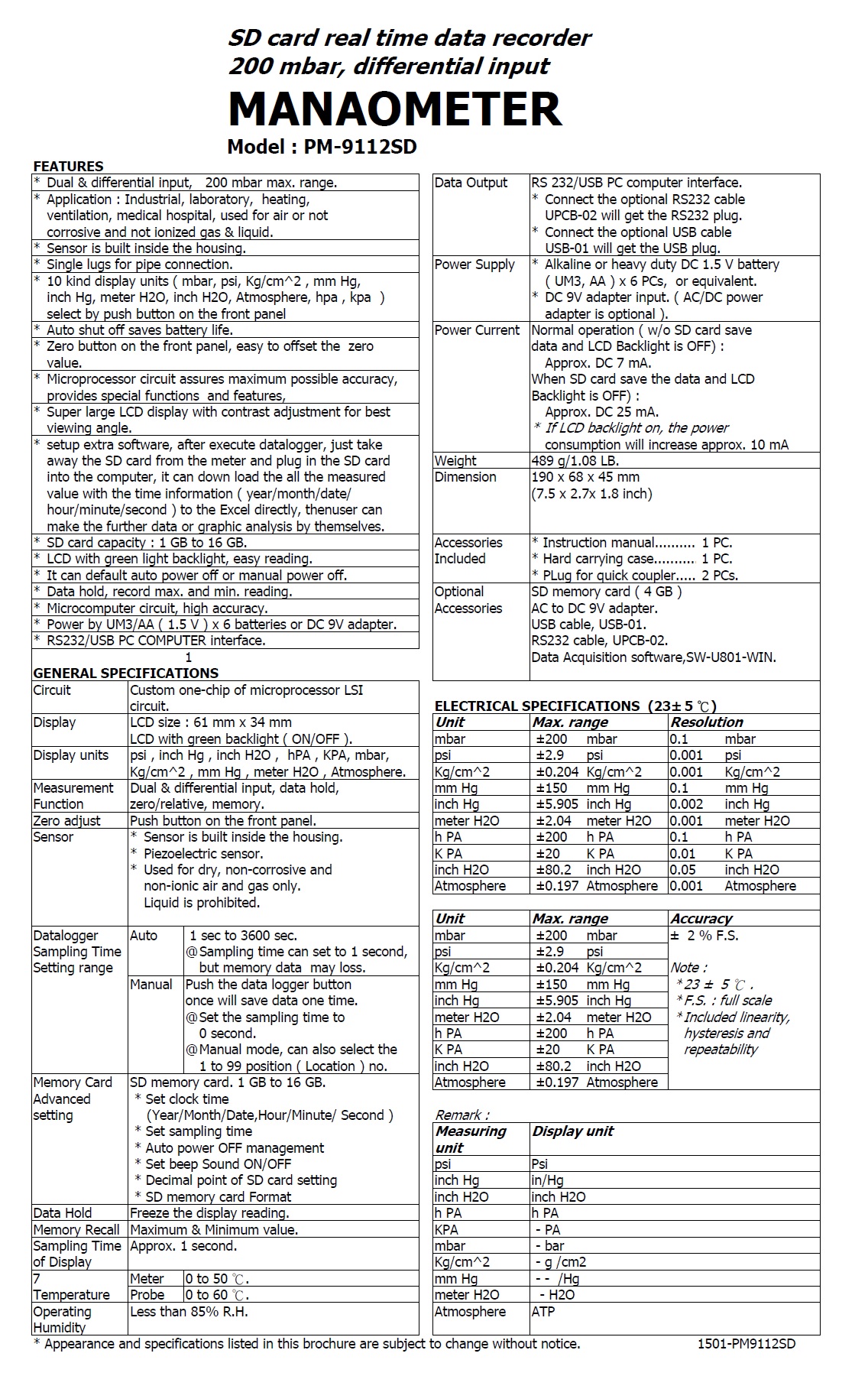 Model : PM-9112SD