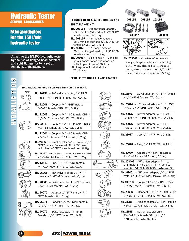 Product Name : | Hydraulic Testers - Service Accessories - Fittings/Adapters for the 750 1/min |