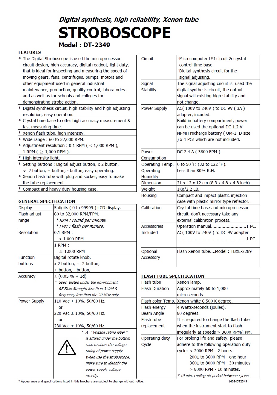 Product Name : | STROBOSCOPE - DT-2349 閃光同步儀 + 光電式轉速計 |