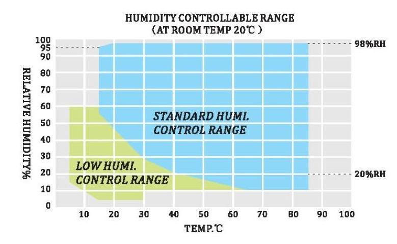 | Model | Working Volume | Dimensions (W×H×D) | Temperature range | Temperature Rise Time | Temperature Pull Down Time | Humidity Range | Power |