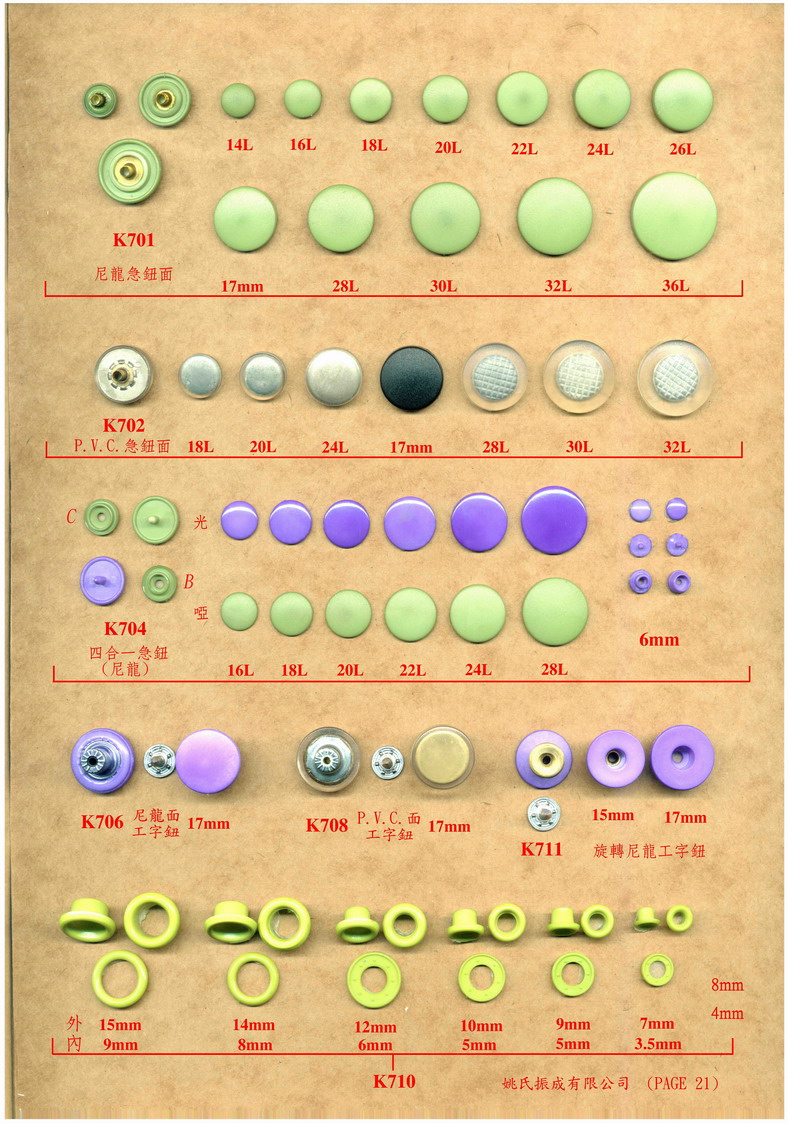 Product Name : | P 20 四合一膠喼鈕,膠雞眼(Plastic Snap Button/Eyelet) |