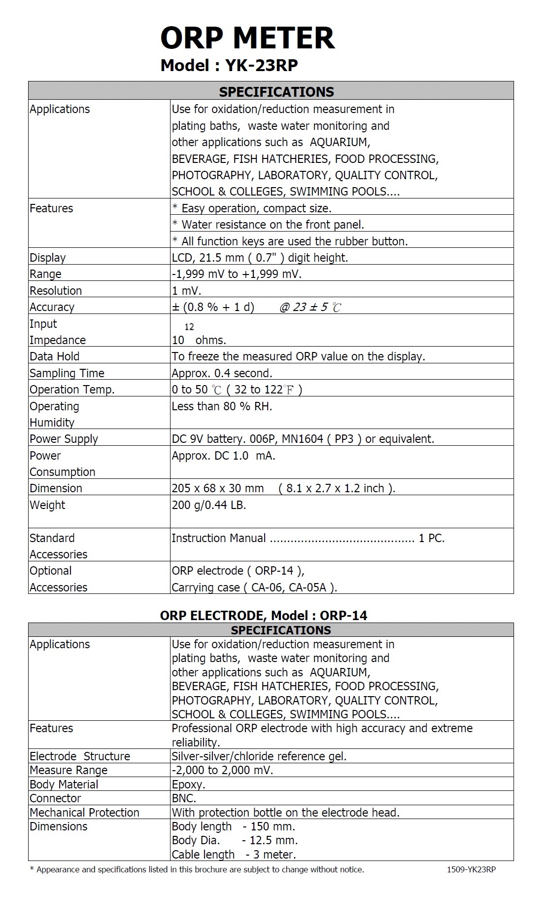 Product Name : | ORP METER - YK-23RP 氧化還原ORP檢測儀 |