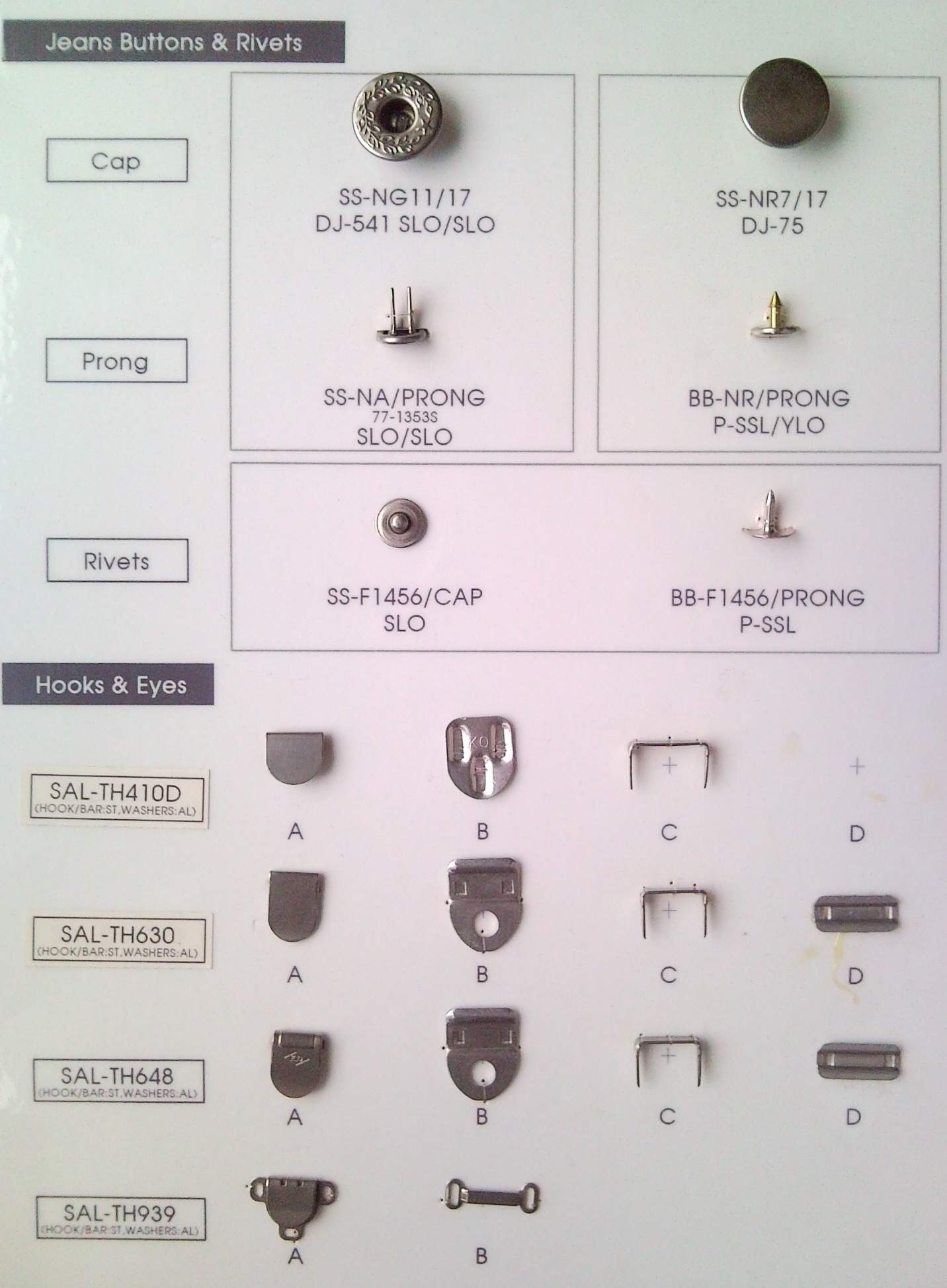 1. 產品 為 JEANS BUTTON / JEANS RIVET / HOOK