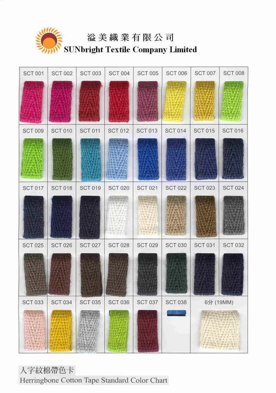Product Name : | 人字紋棉帶色卡 cotton tape |