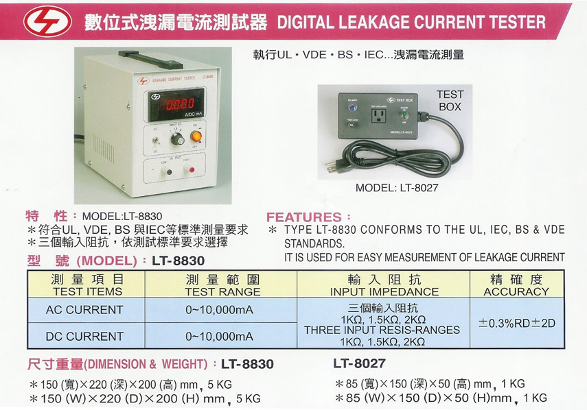 Product Name : | Digital Leakage Current Tester 數位式洩漏電流測驗器 - LT-8830 (代替LT-8026) + LT-8027 |