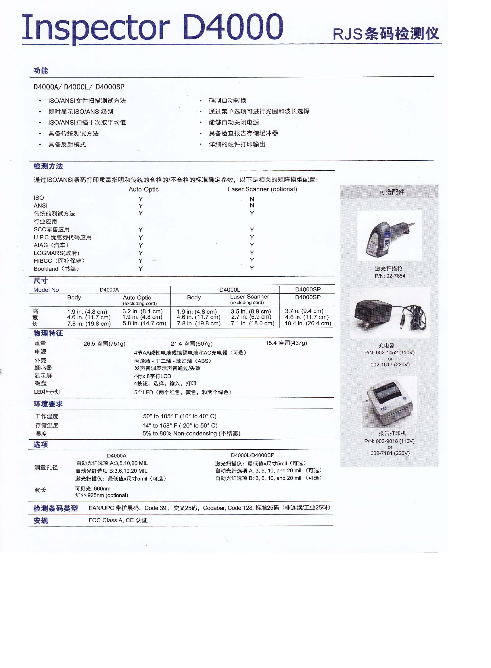RJS D4000 / D4000L 具有兩種不同的掃描頭可以供連接,Auto-Optic掃描頭和Laser(激光)掃描頭,共有九種不同的光學配制,安裝方便,基本上可以使用于各種場合的要求