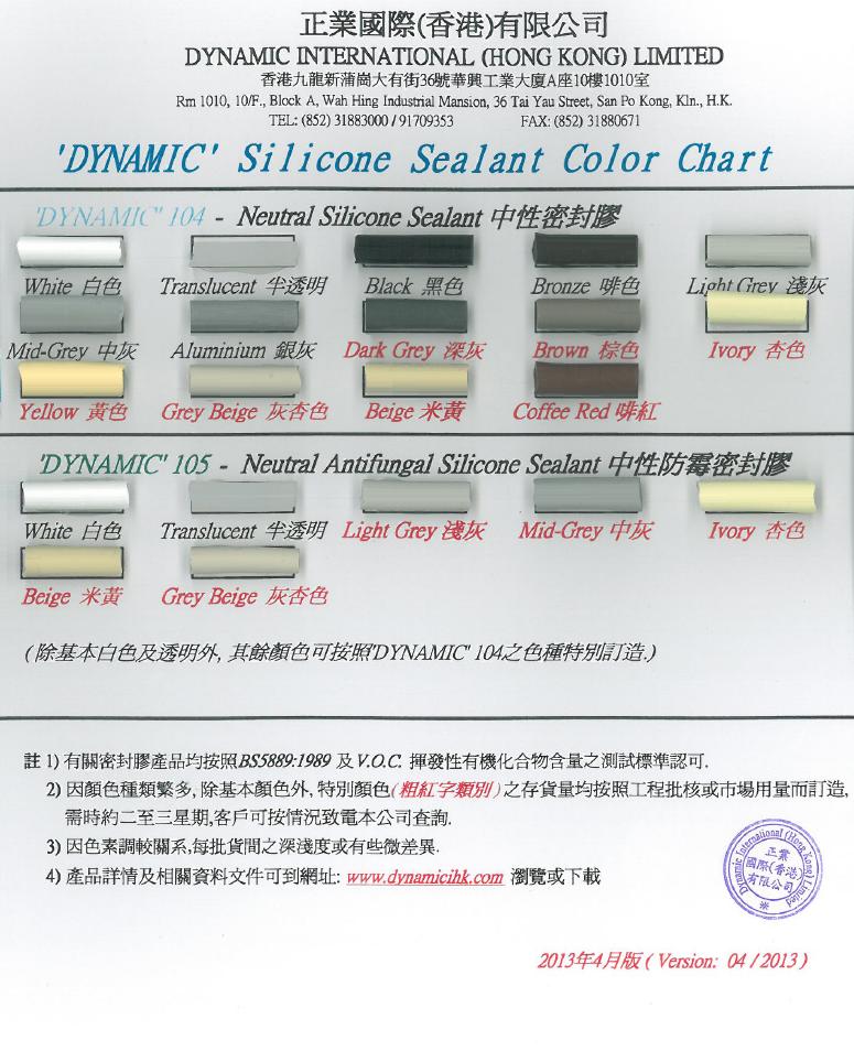 To download our Dynamic - 104 & 105 Silicone Sealant Color Chart  and select the  hyperlink below :