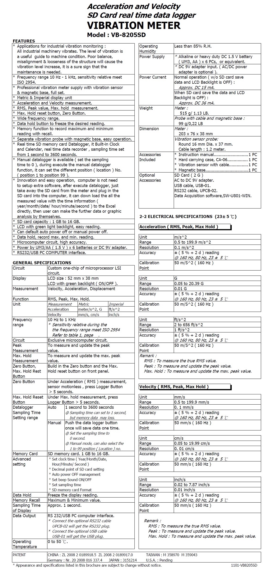 Product Name : | SD Card real time data recorder VIBRATION METER Model : VB-8205SD 記憶式振動儀 |