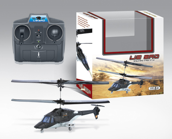 Mini Coyote Main rotor diameter is 130mm (5.25-inch) Length: 170mm (6.5-inch) excluding rotors Rear rotor diameter is 30mm (1.25-inch) Product weight: only 10g, including flight battery Rechargeable flight battery: high-capacity integral lithium-polymer battery Charger: integral transmitter/charger supplied with LED indicator/auto shut-off Simply plug-in and charge Easy to use connections Charging time: 6 to 8 minutes for full charge Flight duration: 10 minutes or more between charges Packing Size: 75.5*51*51.5 CM Certificate: CE/ROHS Batteries required: 6 x 1.5V AA alkaline batteries for transmitter/charger