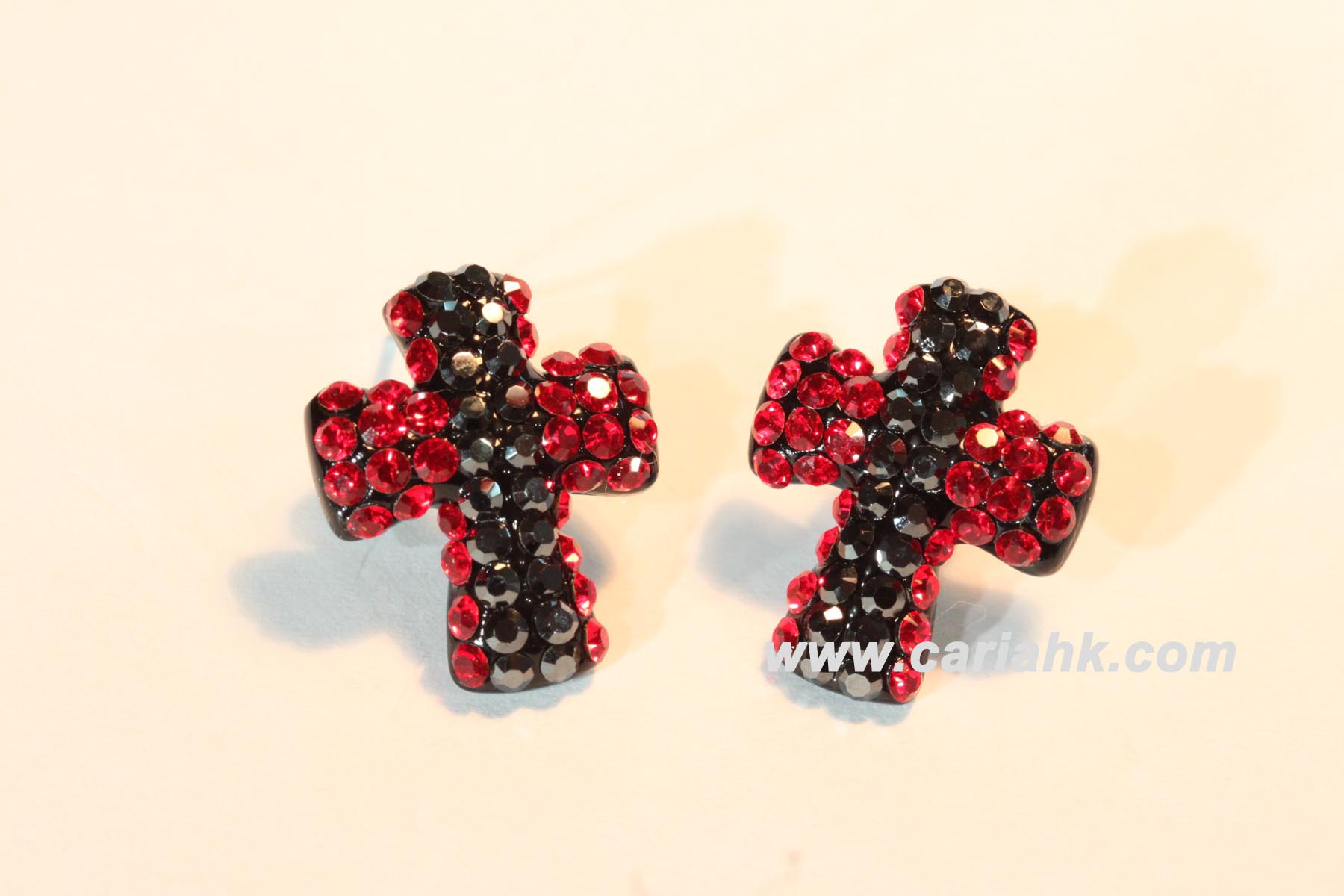 Cross stud earring with red and black crystal -effect stones
