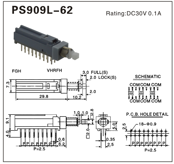 HORIZONTAL PUSH SWITCH (橫按鈕開關)6P2T