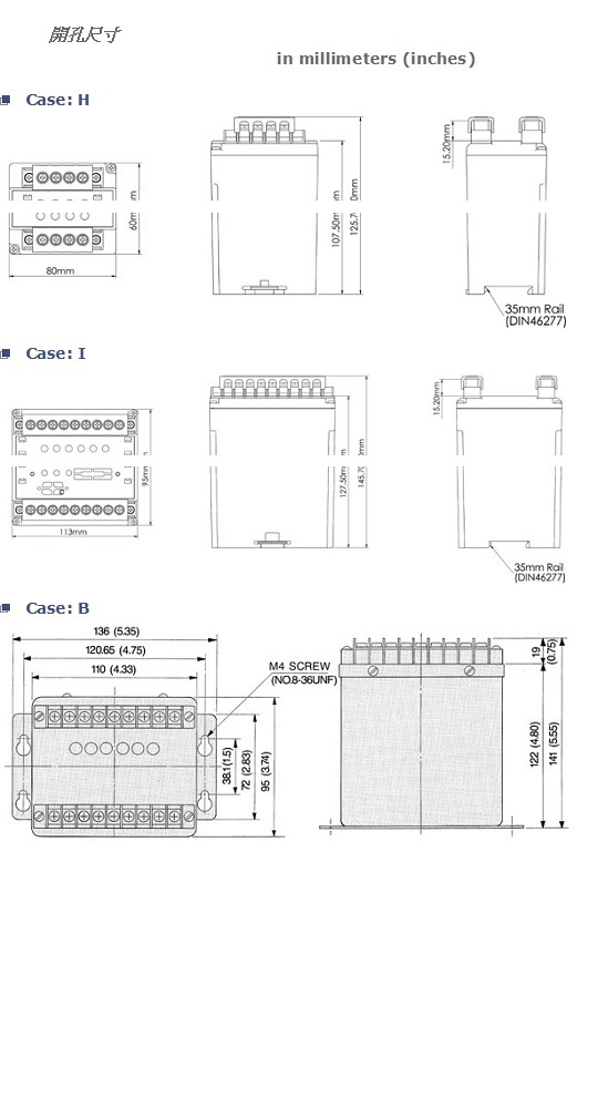 Product Name : | 轉換器、傳送器 開孔尺寸 Case Dimensions |