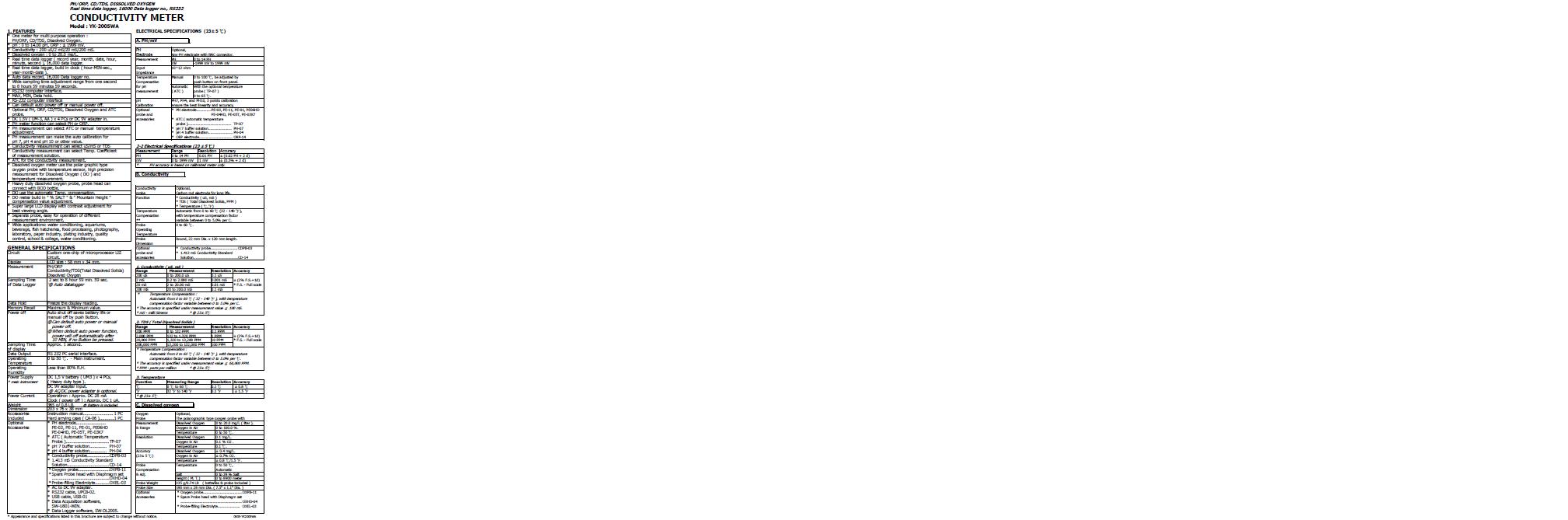 * Conductivity : 200 uS/2 mS/20 mS/200 mS.