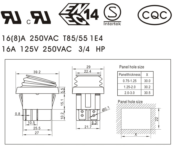 16A 125V 250VAC 3/4 HP